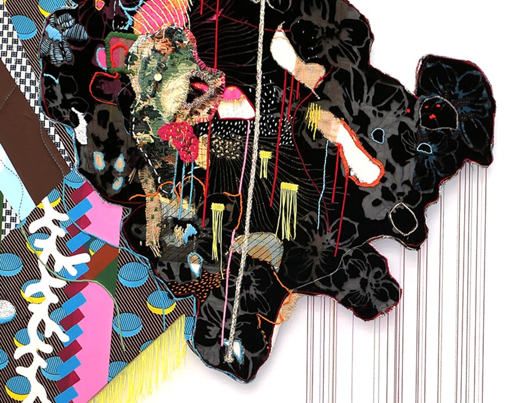 A-tire-d’Elles, 2019, tissu, acrylique, broderie, perles, sequins, 190 x 210 cm