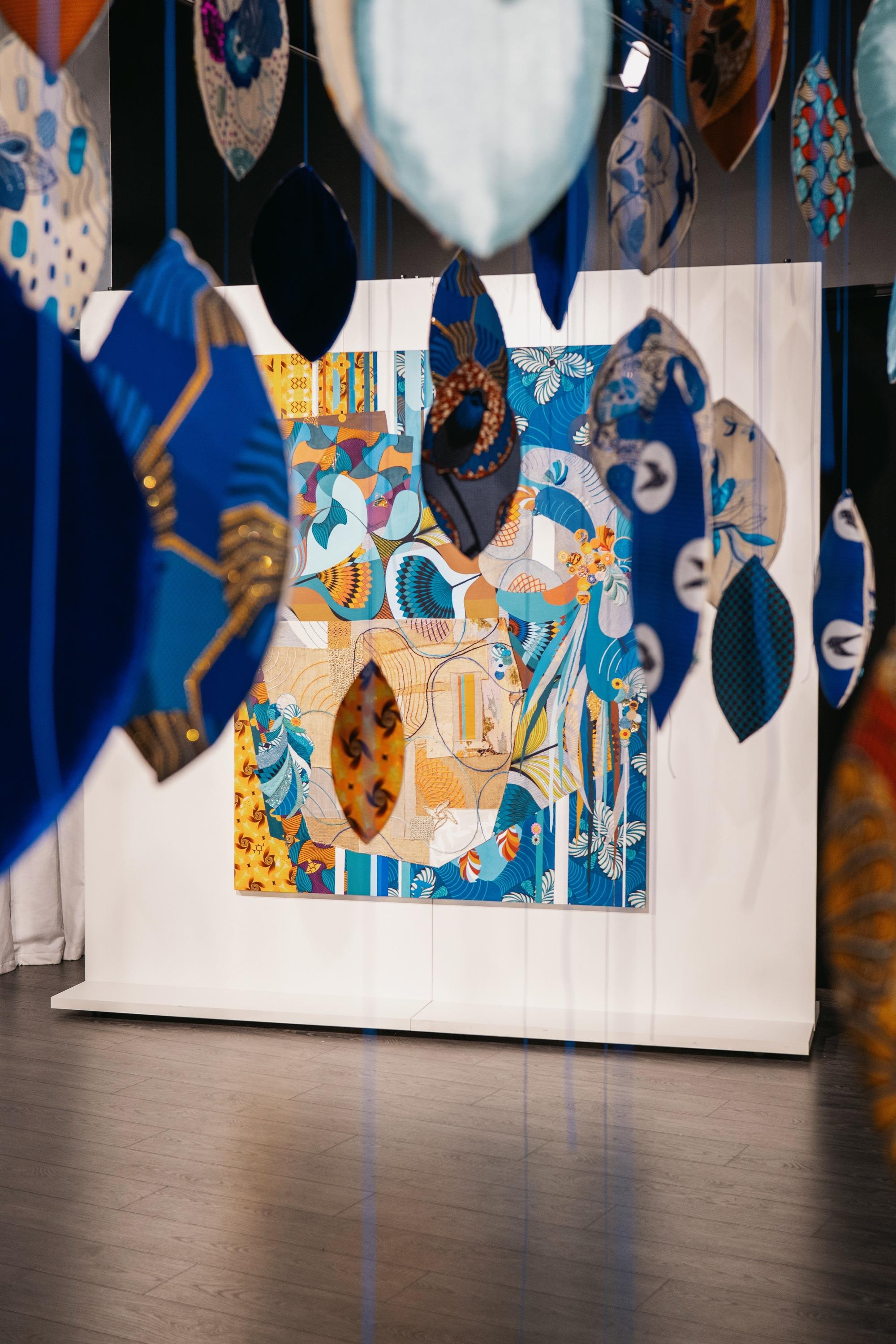 California Dream California Dream, 2020, acrylique, tissus, broderies, toile de jute, sequins, paillettes, 180×140 cm